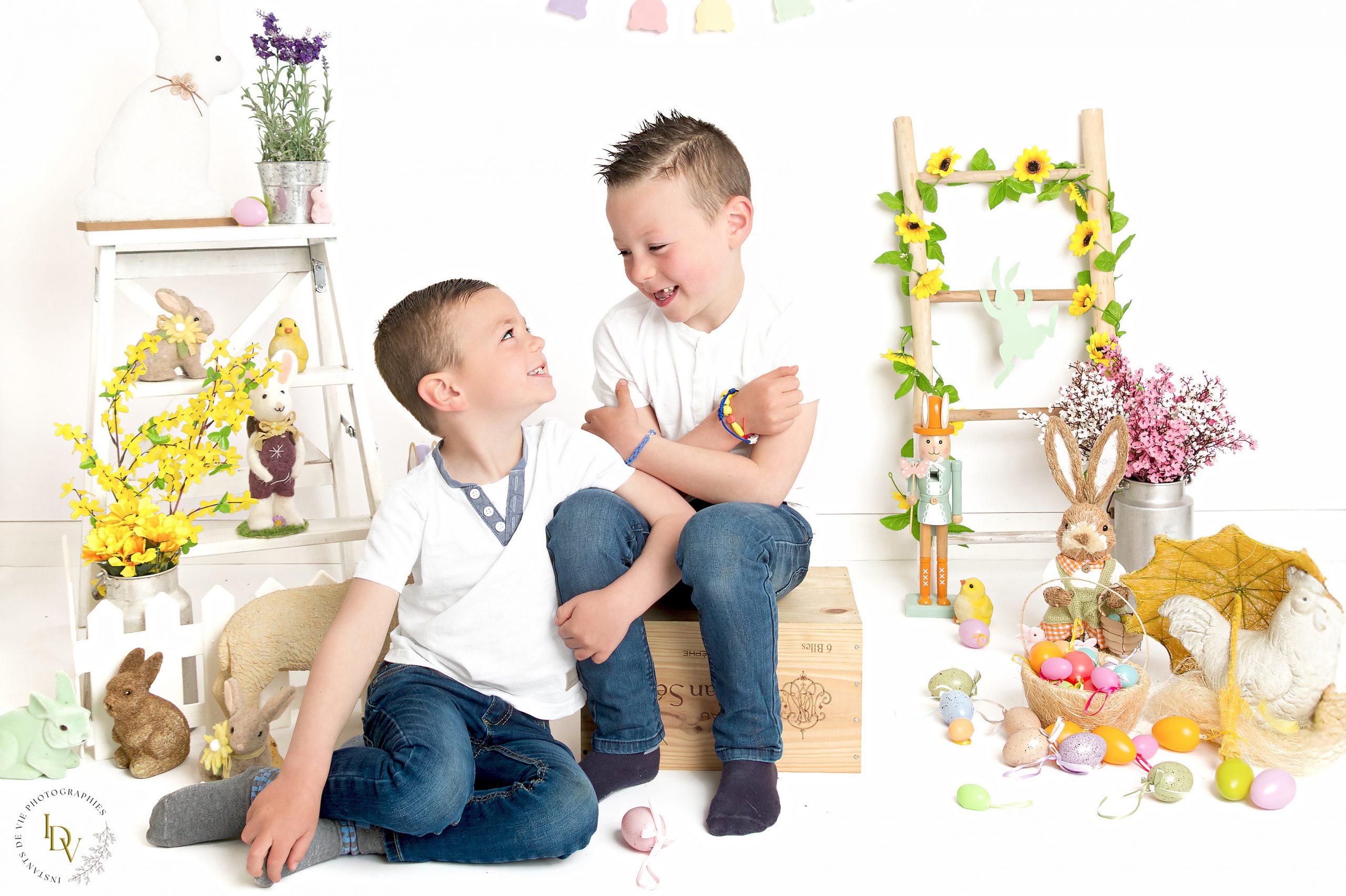 Que ce soit la douceur printanière de Pâques, la tendresse de la Saint-Valentin, l’imagination débordante d’un petit peintre, la grâce d’une princesse ou la joie de gambader à la ferme… chaque décor raconte une histoire, chaque séance devient un jeu où l’enfant est le héros de son propre monde.
